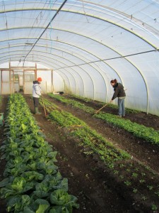 On a recent visit to Clare, I met organic pioneer Jim Cronin at his market stall in Killaloo on a Sunday morning. Despite subzero temperatures, all week he had great lettuces and spinach for sale. “It’s called Winter harvesting” he tells me. “The secret is cold-hardy varieties of vegetables, succession planting and double protected cultivation. I had 4 layers of fleece on top of the plants in the polytunnel.”